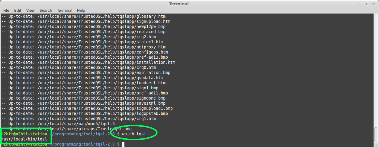 The final step was to install the binaries I had just built, using make install. My first attempt at this was refused — no permissions to write the binaries where they need to go. But with good old sudo, the install completed, and TrustedQSL was installed on my machine. It did not have a launcher icon though.