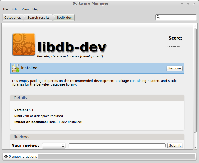 which to me suggested that I was missing first OpenSSL libraries, and then the BDB libraries. I would then start the Software Manager ( a GUI interface to apt provided with the Cinnamon desktop), and search for the appropriate library to install: