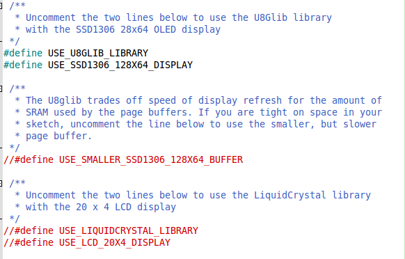 One set compiles the OLED display code, the other set compiles the LCD display code. Choose the display you want by commenting out or deleting the #defines for the unwanted display. Of course, only two defines, one or the othe pair, should be defined. Any other combination will result in compile errors, or at very least confusion.